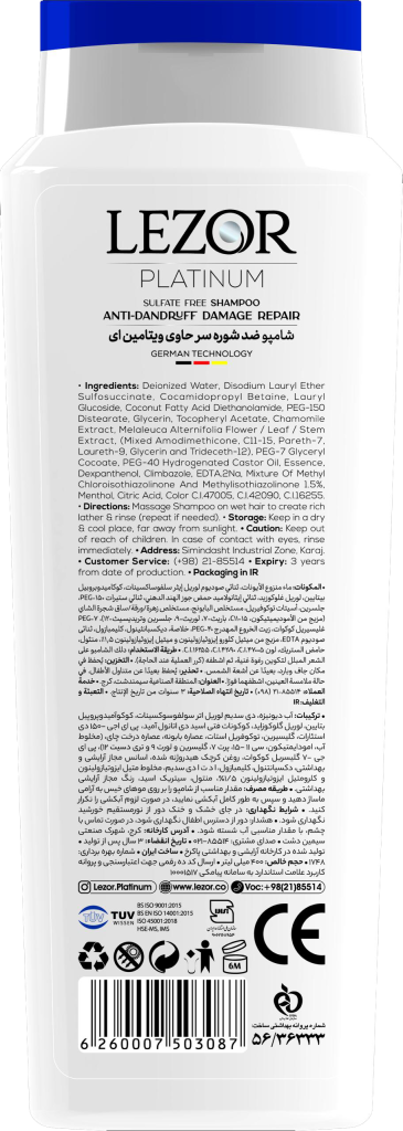 • بدون سولفات: شستشوى ملايم بدون آسيب به مو